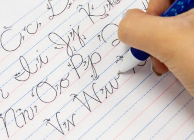 Maybe you lacked the opportunity to learn the skill or just don’t prefer it. I’m not going to “die on that hill” of advocating for cursive (My adult children just sprang up yelling “We object Your Honor! He’s full of it! He and Mom did die on that hill during our elementary school years, even when the teacher didn’t care!”) Well, we’re not perfect. Moving along…